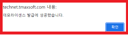 아래와 같이 메시지가 뜨면 정상적으로 데모라이센스가 발급됩니다.