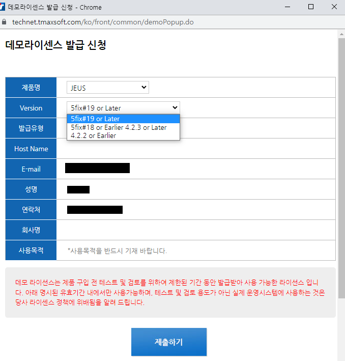 JEUS 데모라이선스 발급 신청 방법