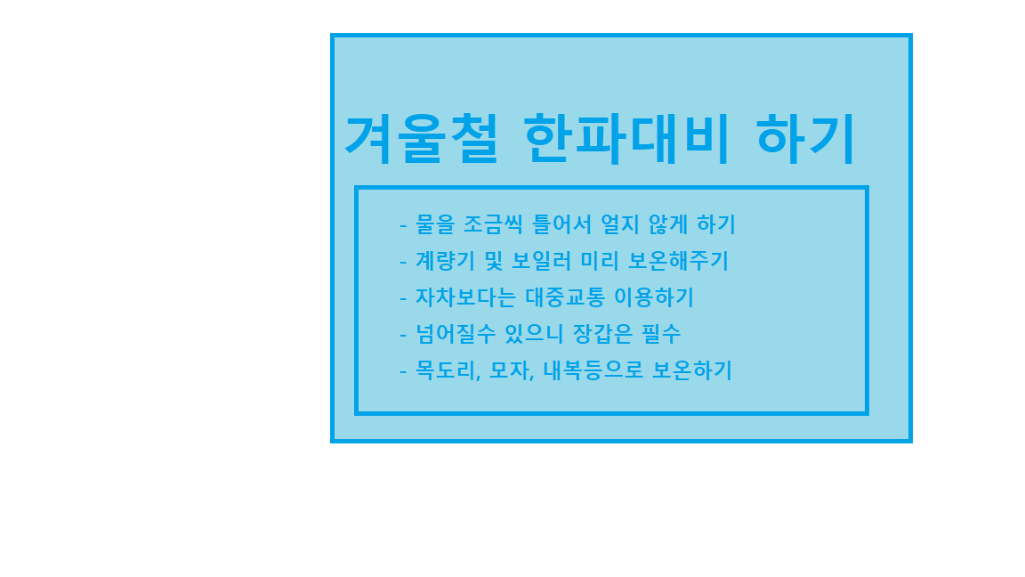 이상 겨울철 한파대비하기 위한 내용을 정리 해보았습니다.